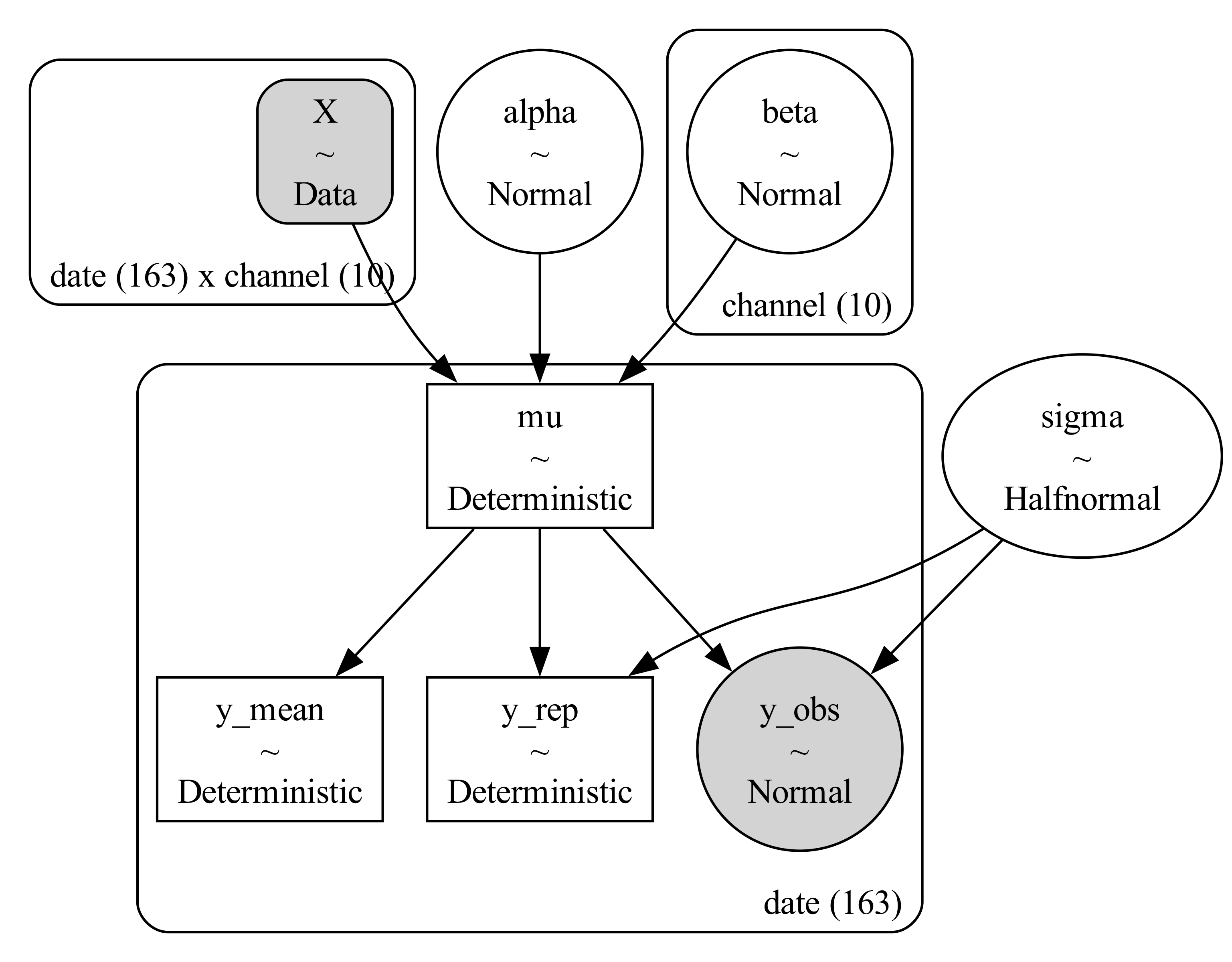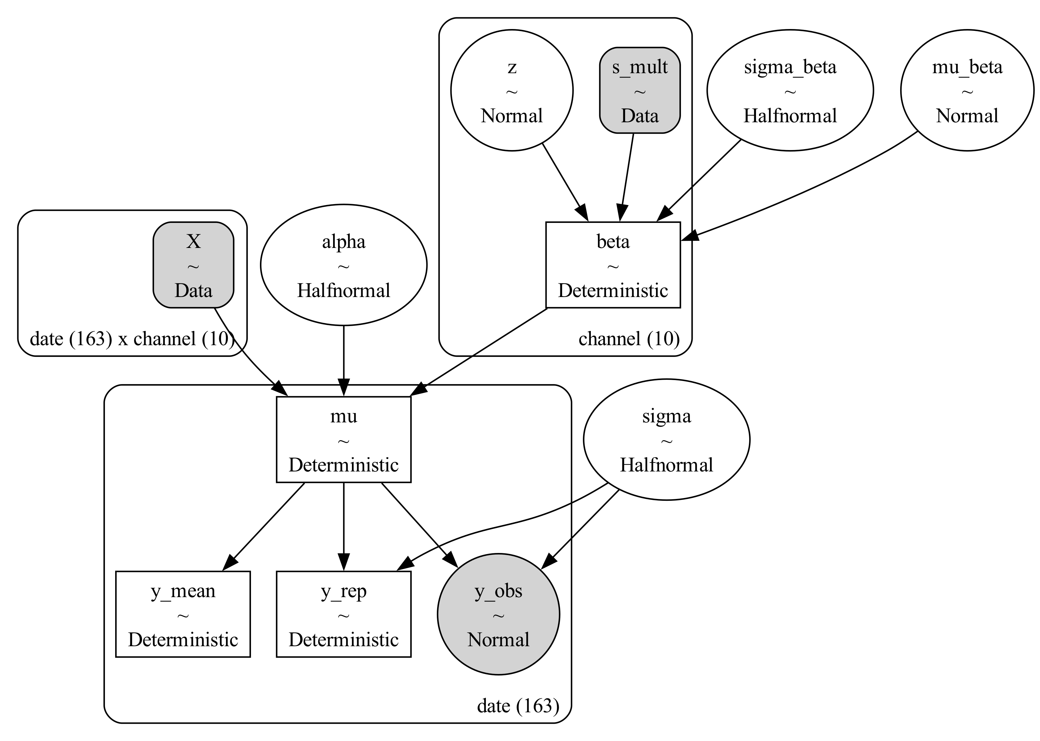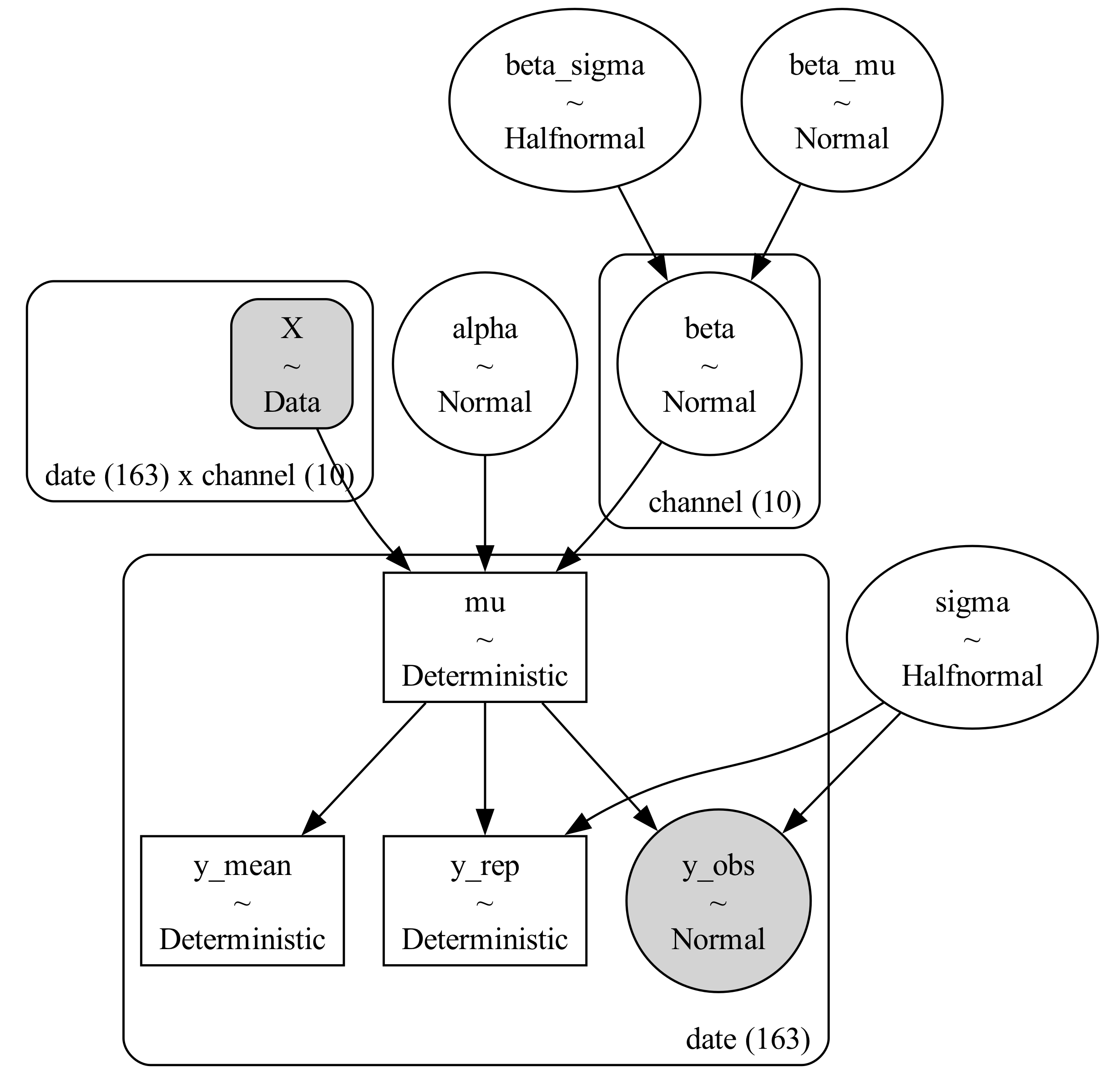 Xd = pm.Data("X", X, dims=("date", "channel"))